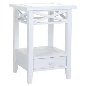 Простота, естественная красота и комфорт – вот «три кита», на которых держится уютный интерьер в прованском стиле. Прикроватная тумбочка «Бретань» полностью подходит под это определение. Она выполнена из массива сосны и МДФ, выглядит подчеркнуто просто и основательно. Стиль южной французской провинции подчеркивается молочно-белым цветом окраски с патиной, геометрической строгостью форм, открытыми поверхностями и стеклянной столешницей. В небольшом ящичке удобно поместятся нужные мелочи.